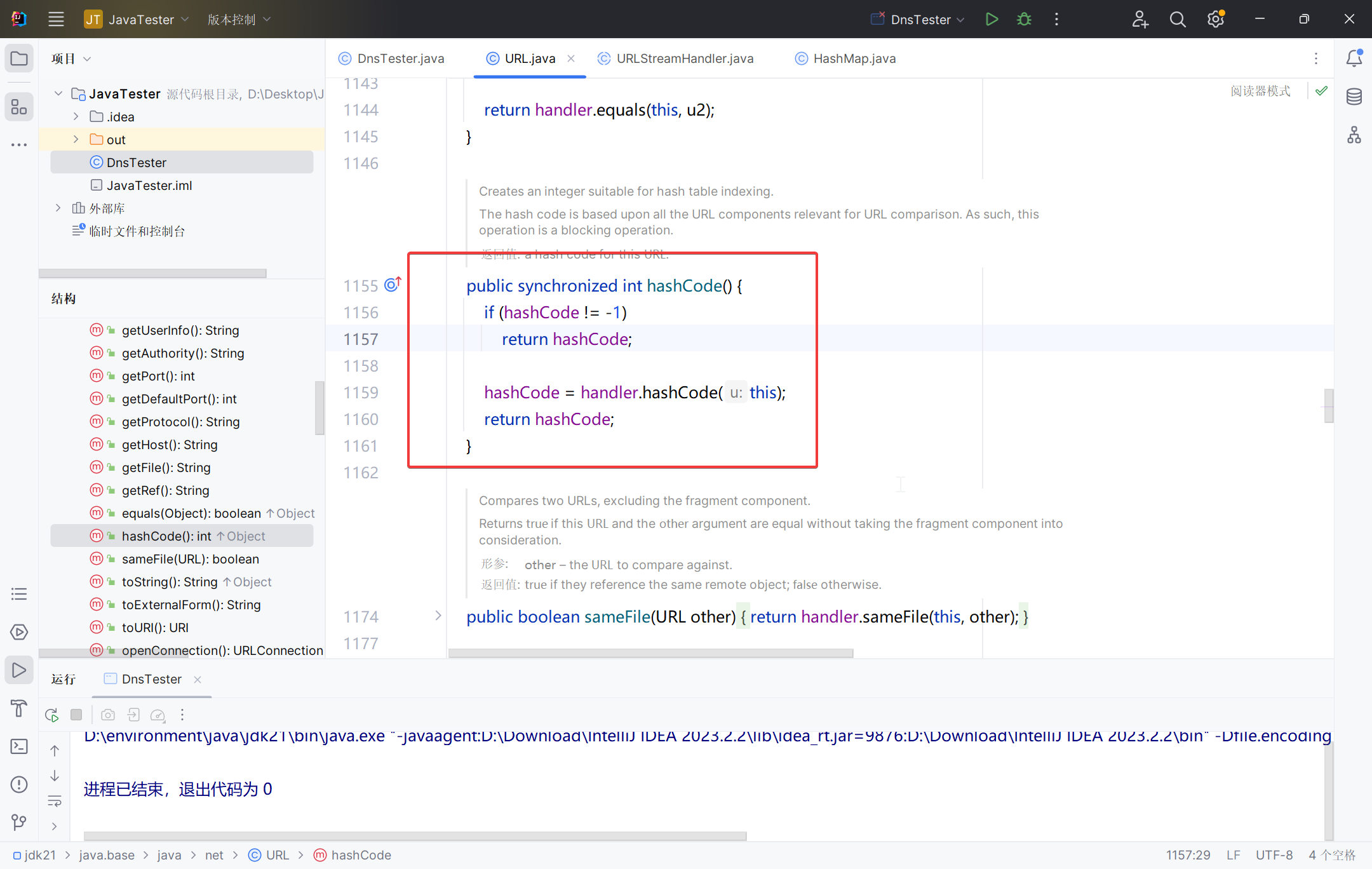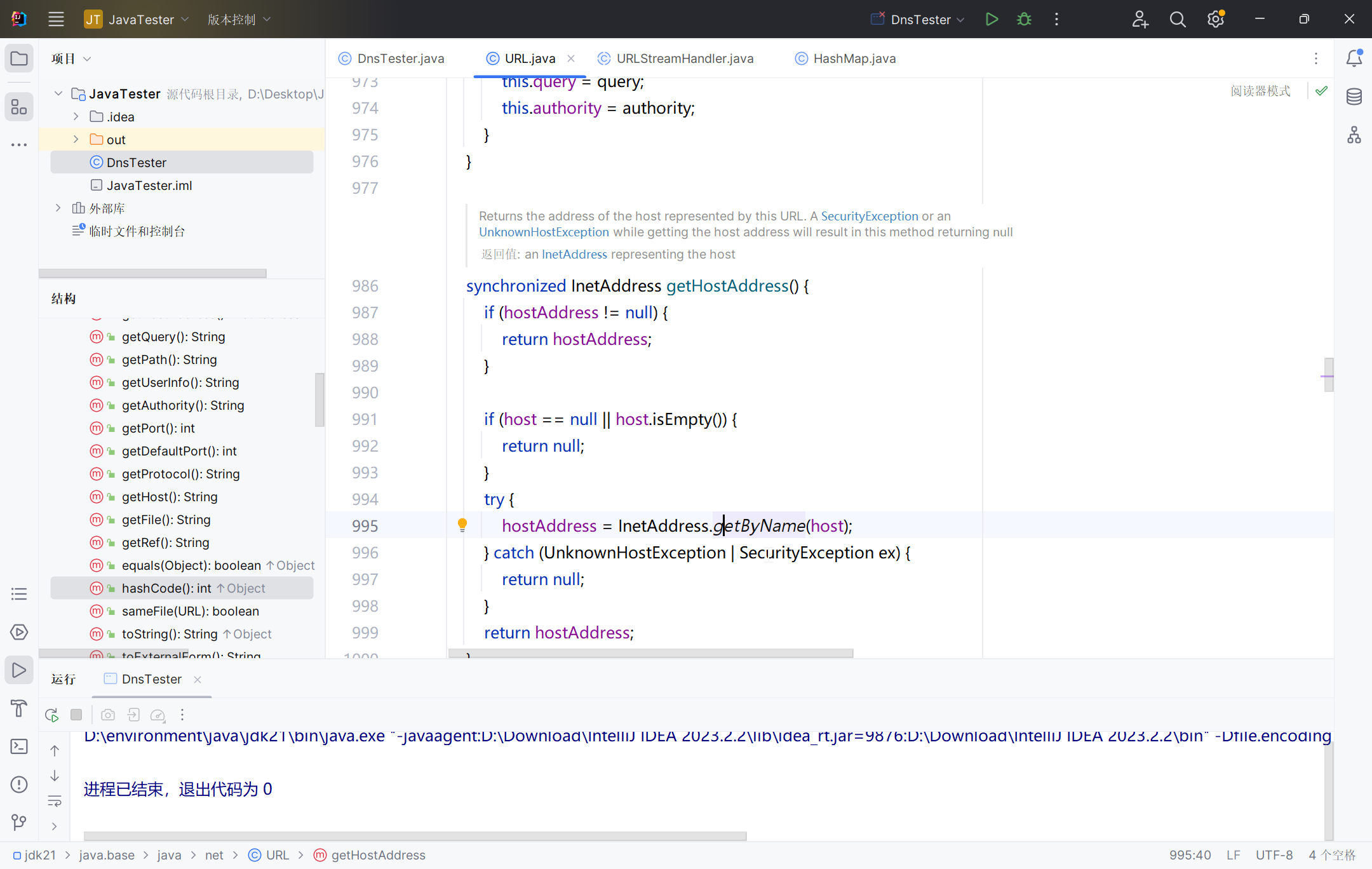 转到DnsTester类,然后ctrl+左键转到URL类中