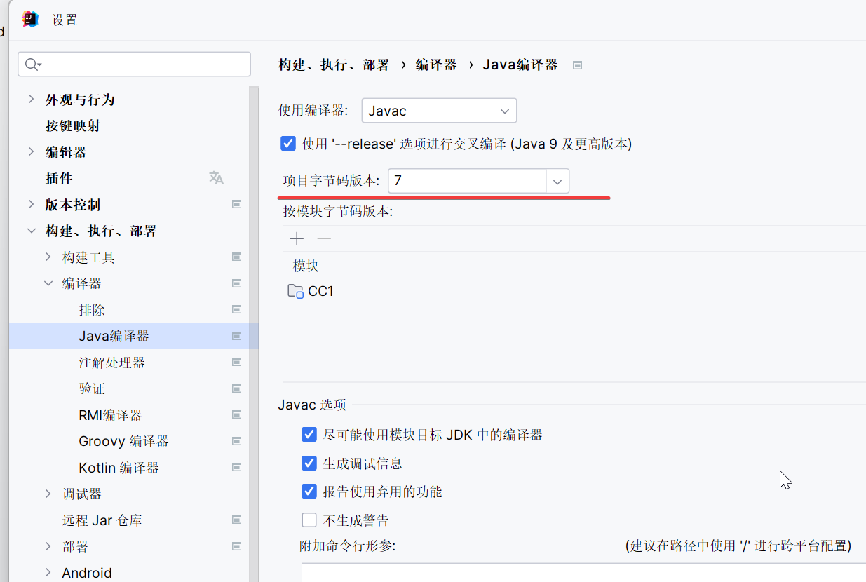 注意 :若是运行出现java源错误,可以修改设置中的java字节版本到相应的版本,然后项目结构中的模块的语言结构也改成相应结构即可