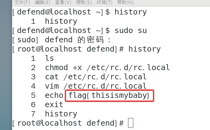 结果发现第一个flag在root用户的历史命令中就出来了flag{thisismybaby}
