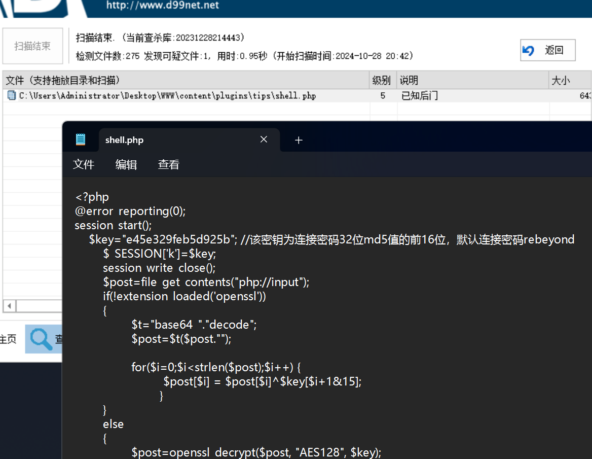 确定了webshell是黑客的入口点后,很明显的看出这个是冰蝎的木马,shell的密码是rebeyond