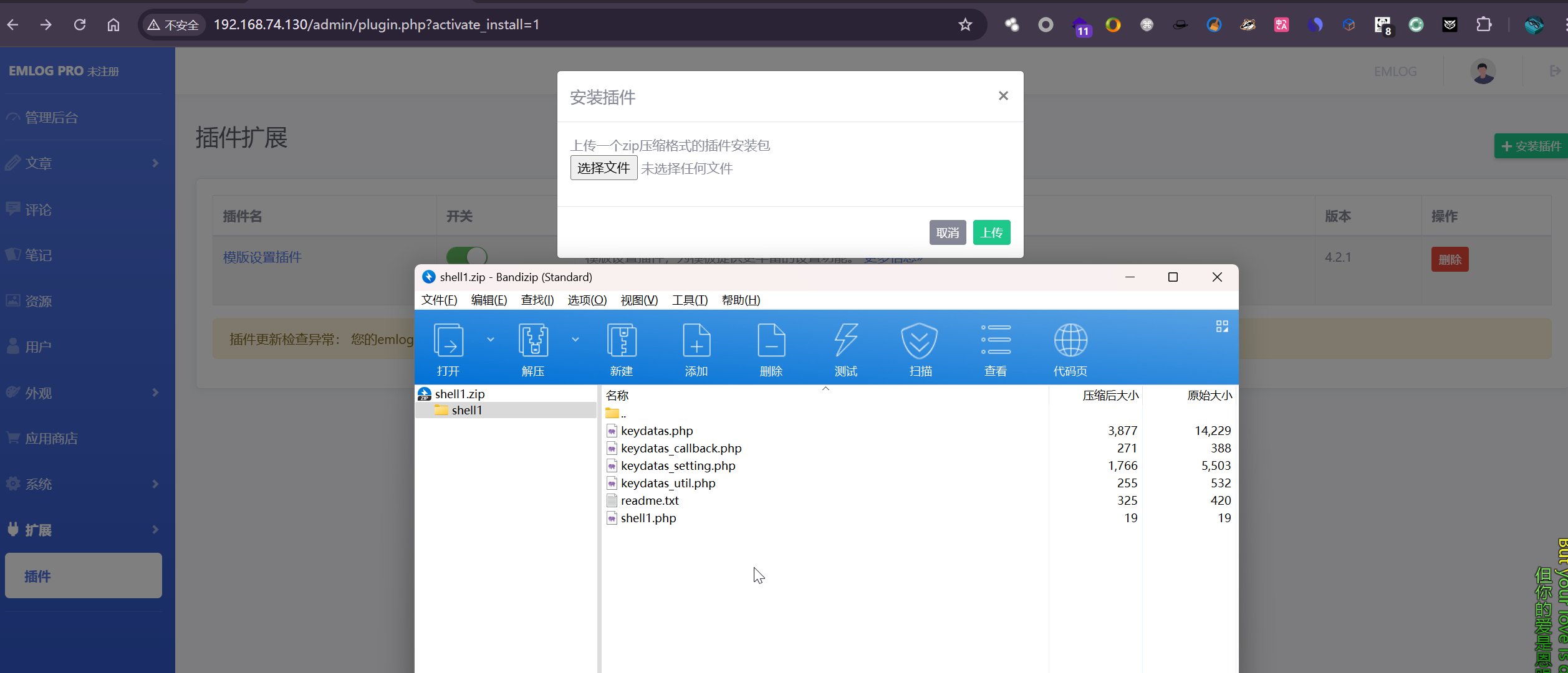 随便在网上找到一个插件,然后添加shell1.php文件,将所有的文件放到shell1文件夹中,然后压缩成压缩包