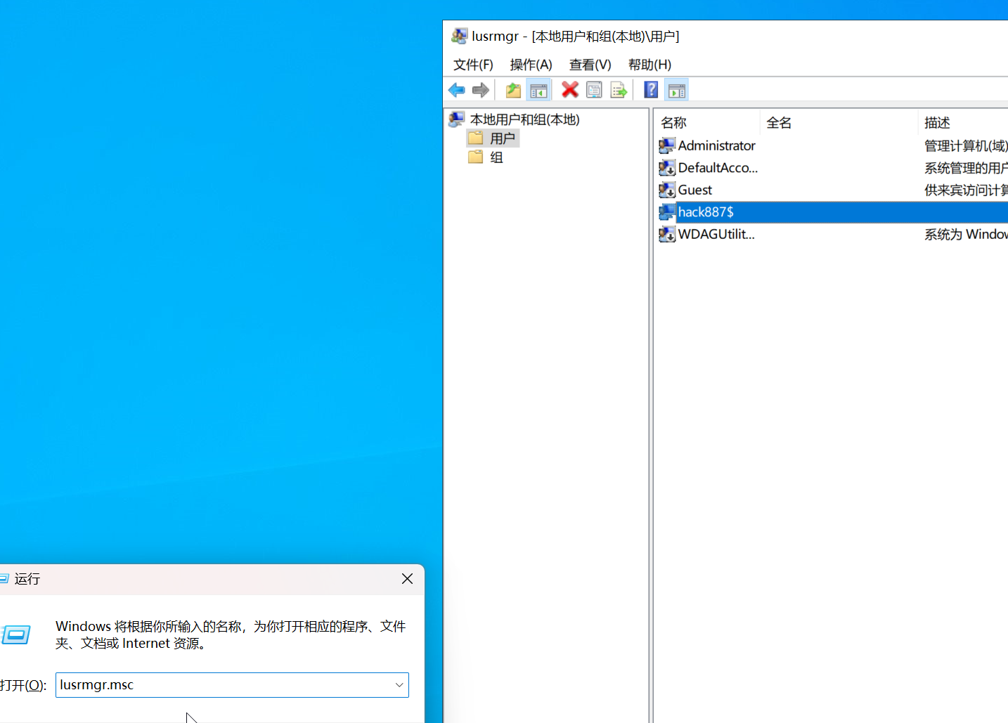 - win+r输入lusrmgr.msc