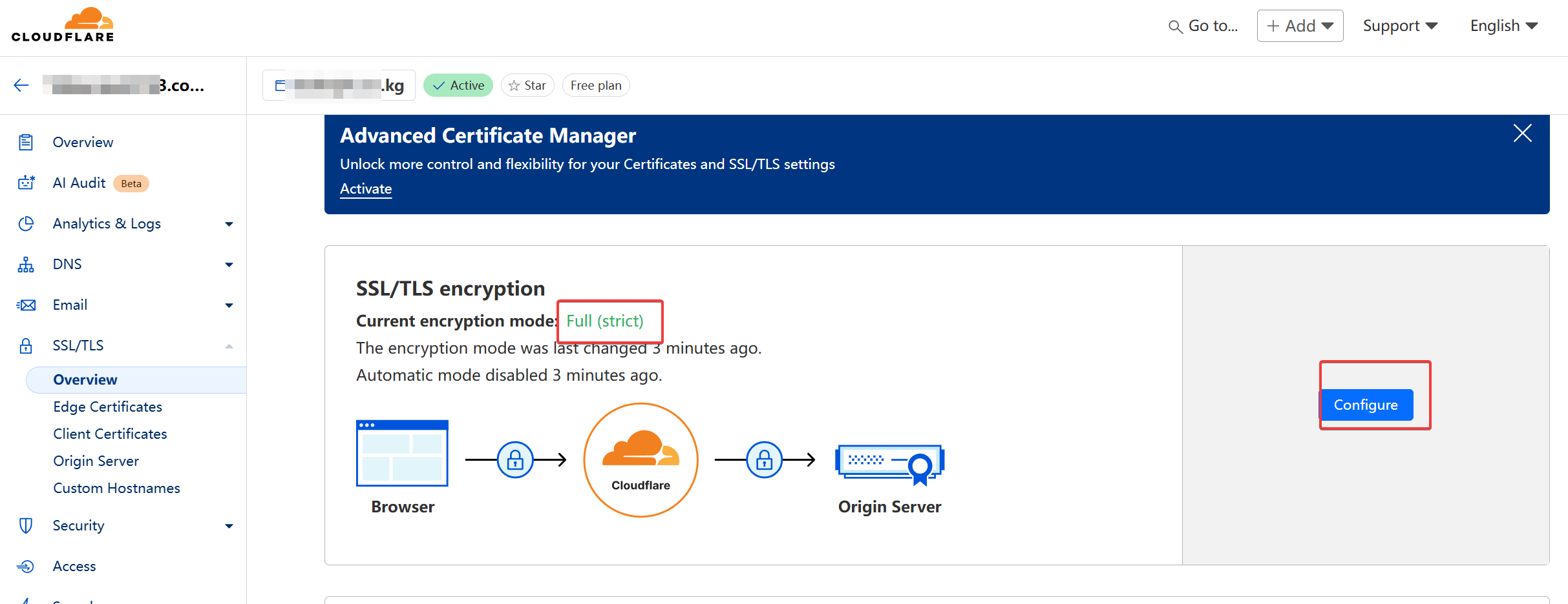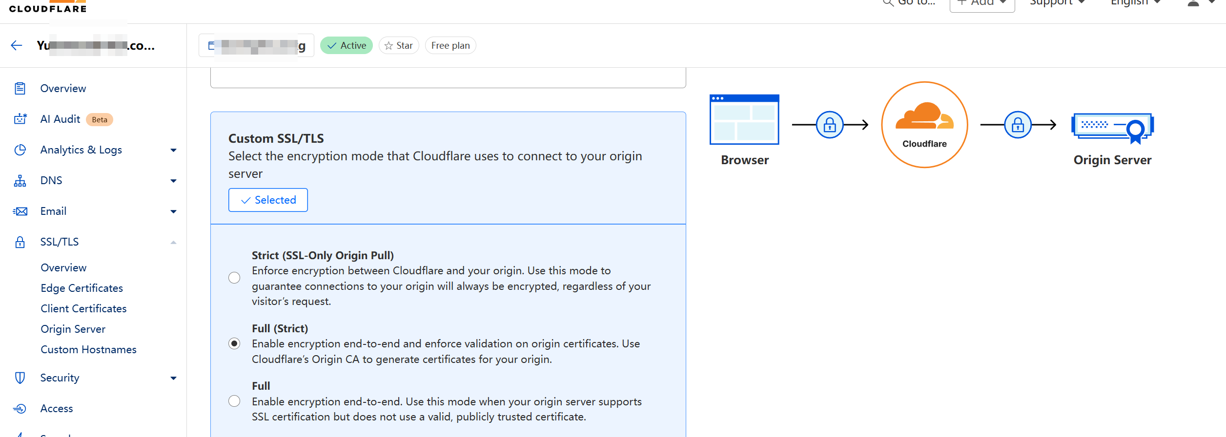 前提:配置好了dns解析,并且将域名托管到cloudflare,这里使用免费的计划
