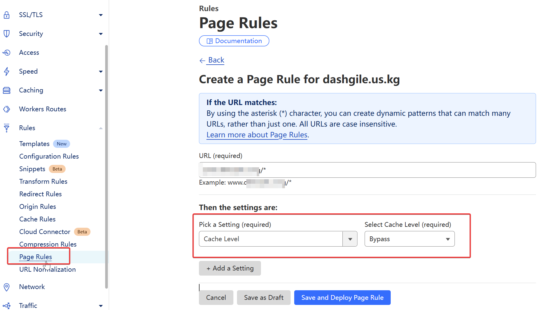 打开页面规则,添加如下的规则