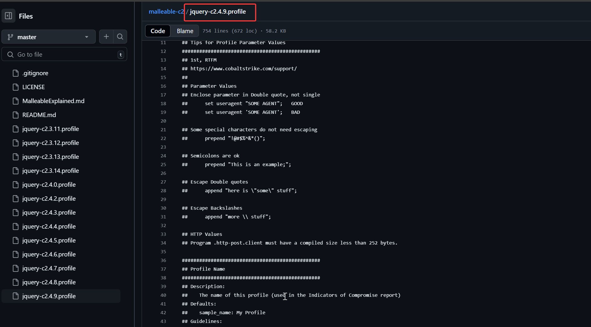 要在teamserver使用另外的keystore证书文件,还需要重新写个配置文件(profile)引用证书。CS profile文件地址:https://github.com/rsmudge/Malleable-C2-Profiles/